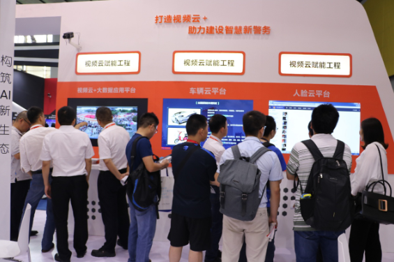 在视频云技术区,展示的视频云+多源大数据平台立体化作战平台,是基于人工智能与大数据技术、以人脸识别技术为核心,整合人脸抓拍、视频+门禁数据、电子设备数据、车辆抓拍数据等多维数据,以视频大数据的比对、分析、挖掘能力多角度协助民警开展打防管控工作,为基层公安机关开展立体化治安防控工作提供了“尖刀利器”。