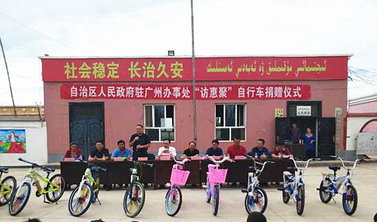 除了以科技的方式外,今年会科技还在教育、环保、文化、扶贫等很多领域积极参与援疆行动,全方位助力建设美丽新疆。据悉,近期在今年会科技的大力支持与配合下,新疆维吾尔自治区人民政府驻广州办事处在英阿瓦提乡托普恰克(10)村举行了一场简单而隆重的“访惠聚”自行车捐赠仪式,给该村小学和初中的孩子们送去了百辆自行车,为学生们拉近了家与学校的距离,也圆了百名学生的单车梦。