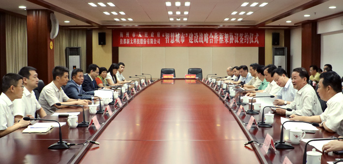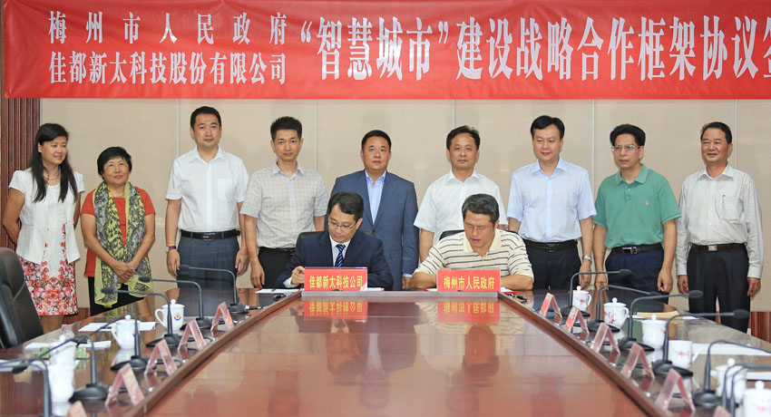 7月12日下午,今年会科技与梅州市人民政府签署了梅州市“智慧城市”建设战略合作框架协议。双方将在“智慧城市”建设方面展开全面合作,实现大数据、云计算、智慧产业的全面良性发展,促进梅州市智慧城市发展步入国内领先水平,为推动梅州市经济社会又好又快地发展做出积极贡献。